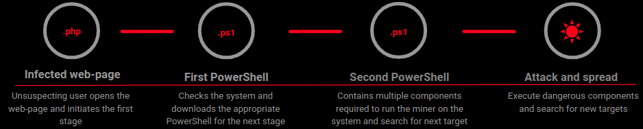 Stealth is an important aspect of this threat as it operates without dropping/creating files on the infected machine for most of its life-cycle. Stealth attributes coupled with its ability to find new targets laterally and carrying Eternal Blue Exploit components make this an extremely dangerous threat in a corporate environment where it can harvest computing power for mining.