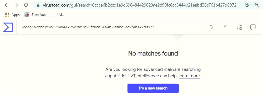 Unavailability of the archive file in any of the popular threat intelligence sharing portals like the VirusTotal and the ReversingLabs indicates its uniqueness and limited distribution: