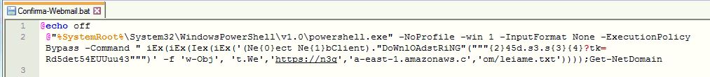 SonicWall Threats Research team has observed an obfuscated batch(BAT) file inside an archive which is delivered to the victim's machine as an email attachment. The BAT file executes a PowerShell script which steals and sends email addresses from Outlook contacts: