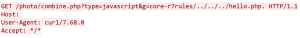 The code is attempting to combine multiple JavaScript files located in the directory "/photo/" using the script "/photo/combine.php". An attacker can manipulate the parameter 'g' by inserting directory traversal characters, potentially granting them the ability to make changes to system files.