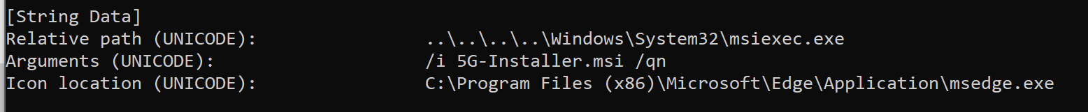 The LNK file is a windows shortcut file that serves as a pointer to load the MSI file using msiexe.exe