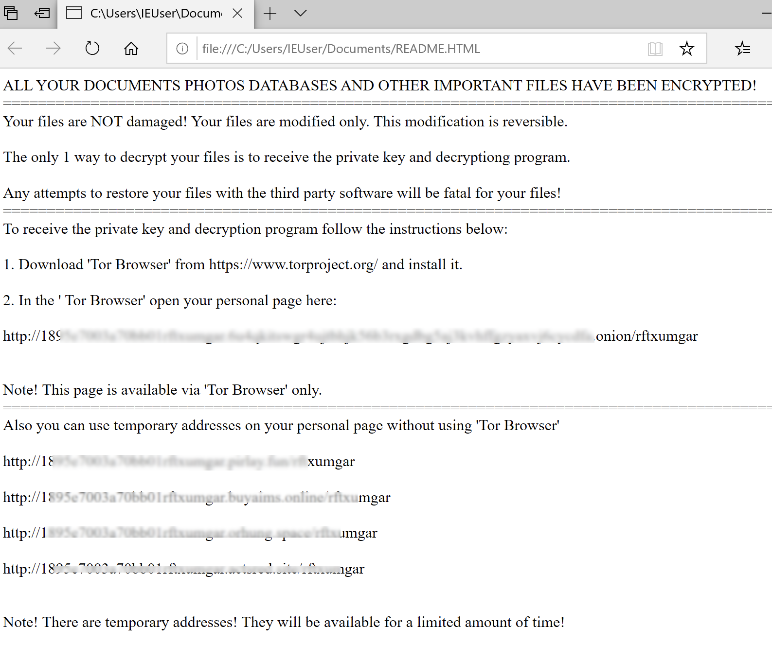 A readme.html present in all directories that have encrypted files show instructions on how to retrieve the victim’s files.