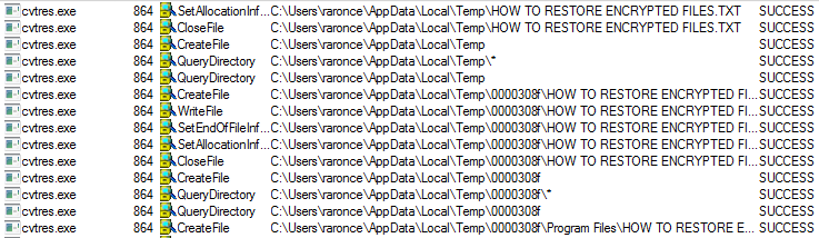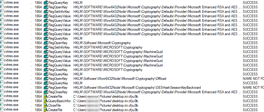 Cvtres.exe then encrypts the victim’s files and appends random characters to the file’s original name.