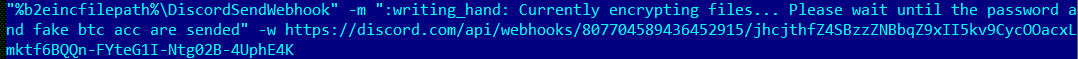 Upon successful encryption of files, the malware sends another message via webhook to its Discord channel with the system info and IDs to help identify this victim’s machine.