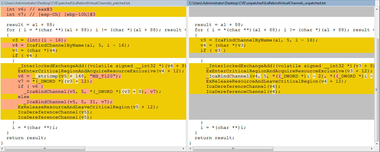 From the images above, Microsoft has now patched the functions by adding a string comparison check for a client connection request using the channel name of "MS_T120" and ensures it binds to channel 31 only.