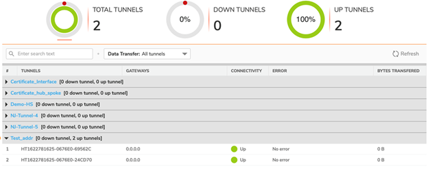 Additionally, the VPN Monitoring feature gives admins complete visibility into their entire VPN environment's activities, health and performance. Admins can leverage this information to monitor connection status, data transfers and bandwidth consumed over those VPN tunnels. At the same time, alerts allow admins to proactively maintain the integrity of VPN connections, ensuring continuous connectivity between sites.