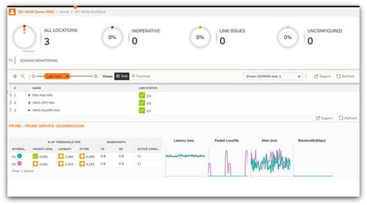 SD-WAN Monitoring feature lets admins proactively observe the health and performance of their SD-WAN environment, such as interface status, utilization and performance service level. The information allows network infrastructure teams to: