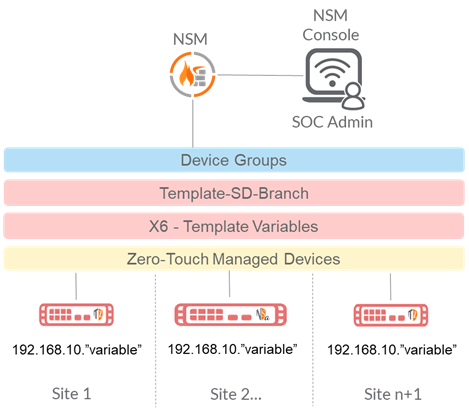 Whether you have a single site or hundreds of sites, the Template Variable within the Template configuration workflow makes building out any number of sites super-fast. It does this by auto-provisioning device-specific configurations for each firewall. As a result, distributed enterprises can onboard and secure new branch facilities quickly and easily, eliminating separate manual setups for each device at every location.