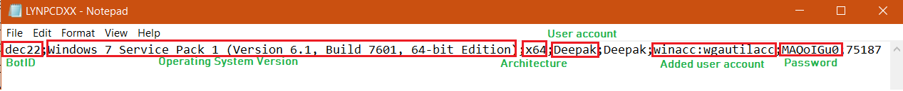 The malware writes victim's machine information into "%TEMP%\LYNPCDXX":