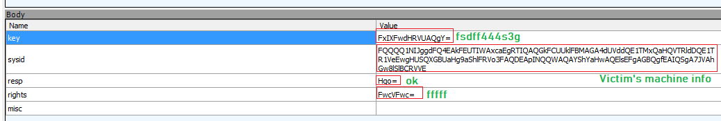 The malware sends the information to its Command and Control (C&C) server. Before sending information to the C&C server, malware performs xor operation followed by Base64 encoding: