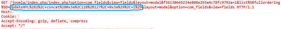 The malicious data then produces database query results. The vulnerability lies in the getListQuery method of /administrator/components/com_fields/models/fields.php.$query->order does not sanitize the user input,