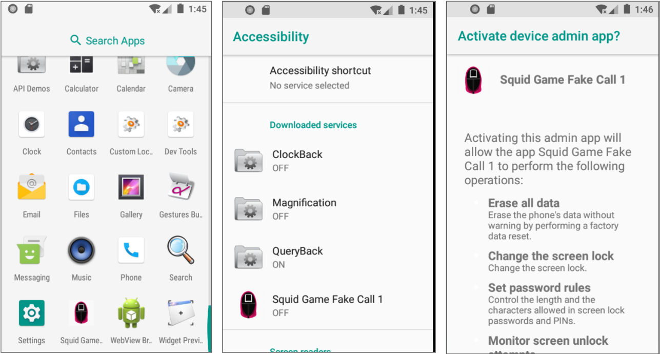 The series Squid Game has been a global phenomenon in the last few weeks and malware writers are using this popularity as a means to spread their malicious creations. We have started seeing numerous malicious Android apps use the name and icons of Squid Game. One of the highlights was SpyNote that has been masquerading as popular Android apps.