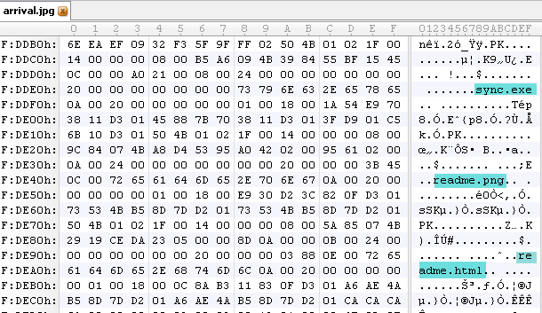 But upon careful examination, this jpg file appears to be an archive containing the ransomware components.