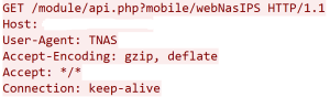 The module webNasIPS is vulnerable due to the way it processes requests when the User-Agent is TNAS . When the 'webNasIPS' function of 'mobile ' class is initiated by the api.php , it ignores the authentication check and returns sensitive information. The response contains information regarding password hash , TOS firmware, default gateway, interface’s IP and mac address.
