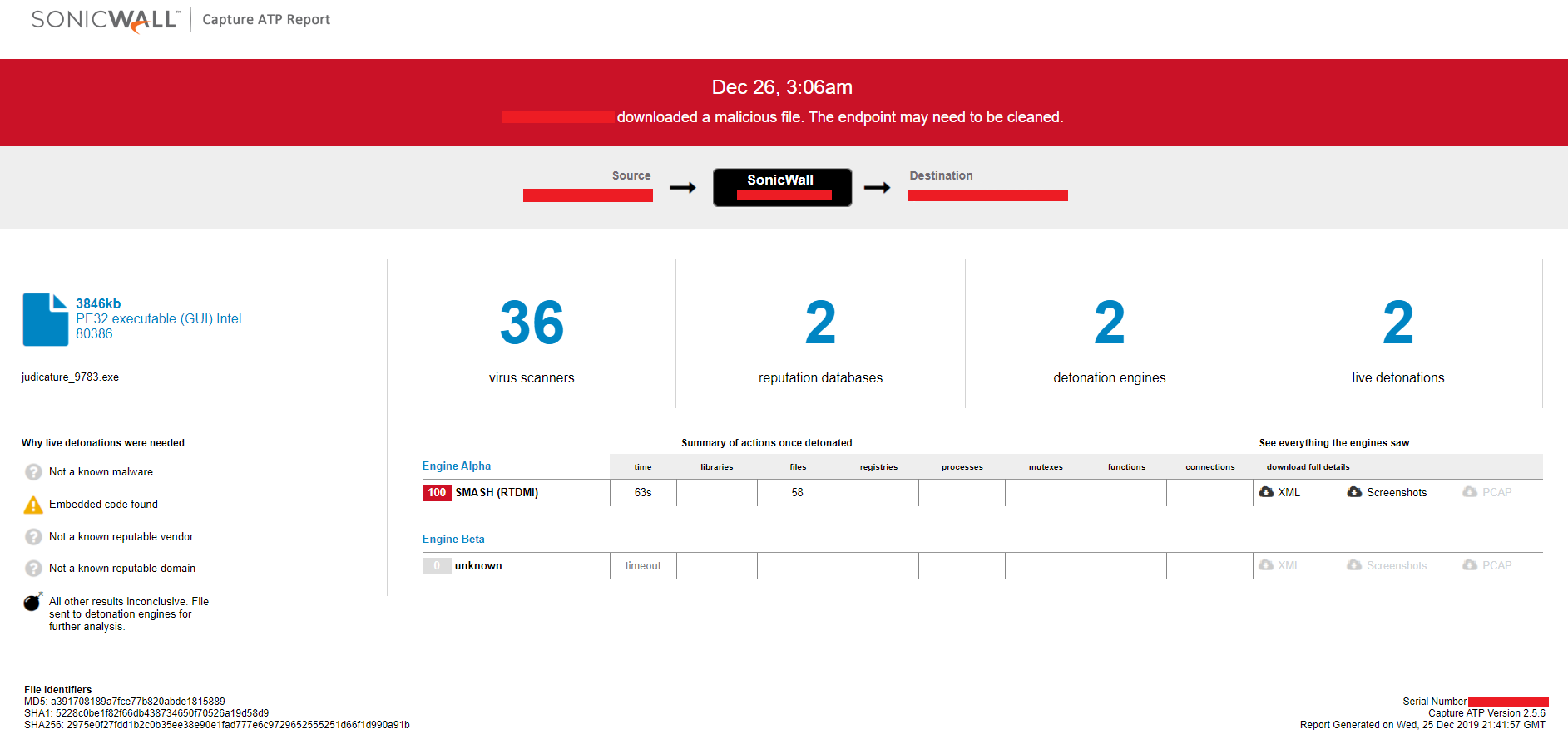 Evidence of the detection for the first variant and the recent variant by RTDMI ™ engine can be seen below in the Capture ATP report: