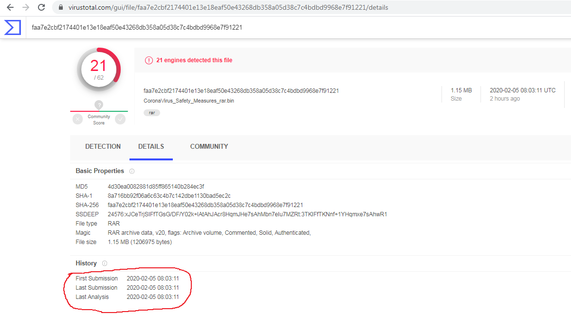 Unavailability of archive files in any of the threat intelligence sharing portals like VirusTotal and ReversingLabs at the time of writing this blog indicates its ability of keeping a low profile: