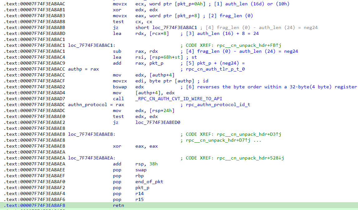 Figure 5 - epilogue of rpc__cn_unpack_hdr()