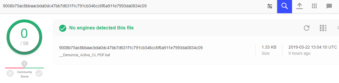 Fig: VirusTotal detection score for the batch script