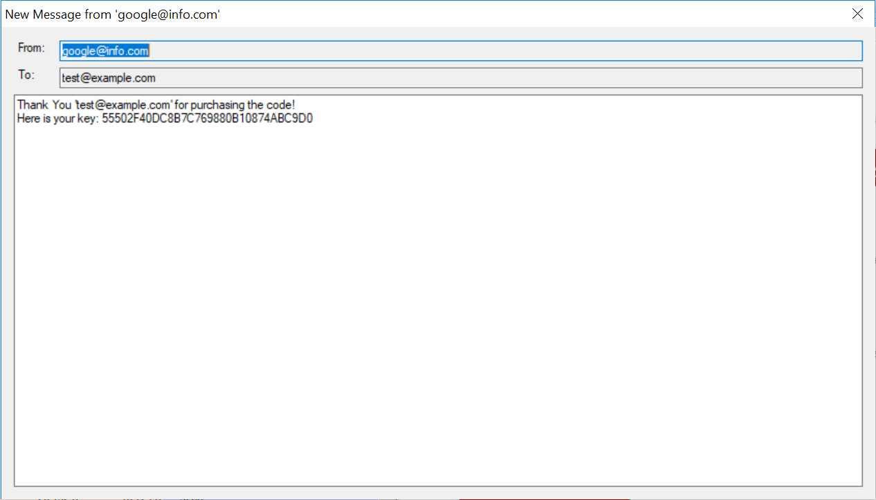 Providing any random email address for the "E-Mail Address:" field brings up the following dialog: