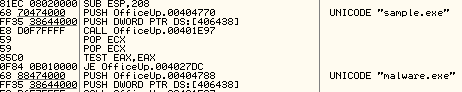 Upon execution the Trojan compares its file name against the following two names that are commonly used by security researchers when naming their malware samples and terminates itself when it finds a match: