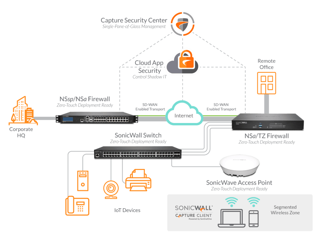 Profitieren Sie von zentralisiertem Management über LAN-, WAN- und Sicherheitslösungen in allen Ihren Niederlassungen. Bietet robuste Sicherheitsverwaltung, Analysen und Echtzeit-Bedrohungsaufklärung für Ihr gesamtes SonicWall-Netzwerk-Portfolio.