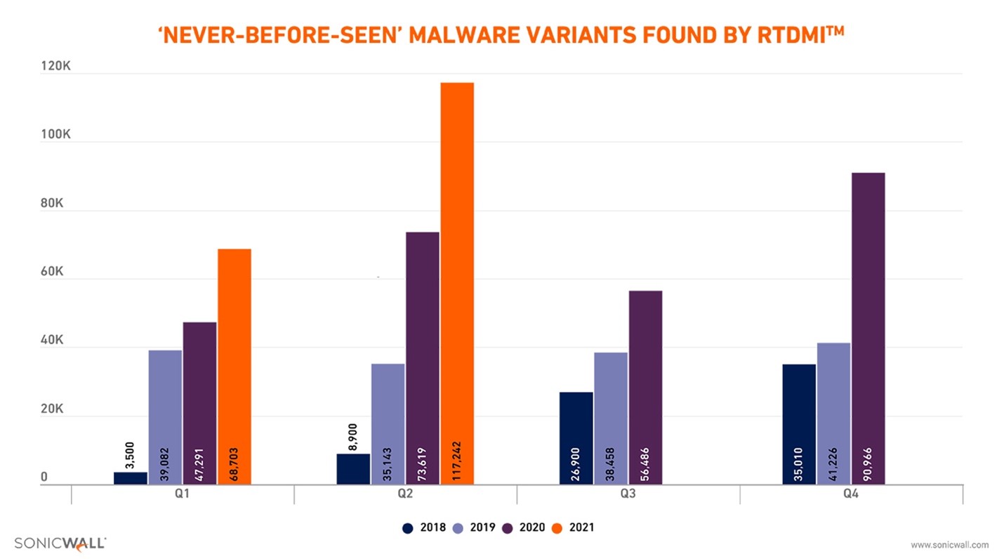 These results are just one indication of the potential found within Capture ATP’s machine-learning capabilities. Capture ATP’s RTDMI technology continually grows faster, more vigilant and more intelligent. According to SonicWall Capture Labs, each year since its introduction, RTDMI has identified significantly more threats than the previous year: in the first six months of 2021, it identified 54% more never-before-seen threats than it did the first half of 2020.