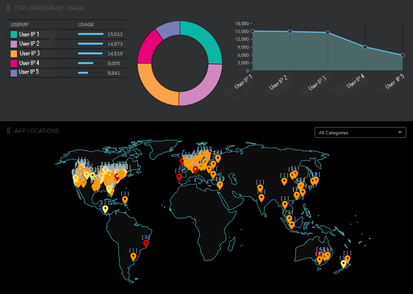 Les administrateurs peuvent également faire un suivi des principaux utilisateurs et applications selon l’usage qui en est fait et le lieu à partir duquel l’application est utilisée.