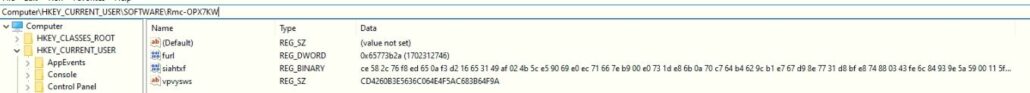 Remcos is a well-known Remote Access Trojan (RAT) which collects various information from the victim’s machine including executable’s name, computer name, Windows version, RAM information and key logs etc., The malware keeps the Remcos data into registry entry “HCU\Software\Rmc-OPX7KW.” Please refer here for detailed analysis of Remcos RAT.