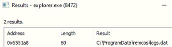 The malware keeps the keylogging information into file “C:\ProgramData\remcos\logs.dat” and sends the stolen data to the C&C server “retghrtgwtrgtg.bounceme.net”: