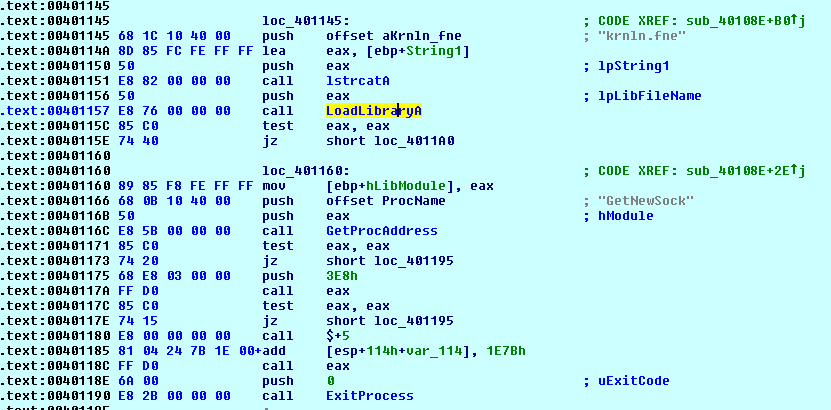 On analyzing the malware sample binary code, it is observed that a malicious function, which has code to load required DLLs (kernel32.dll, wininet.dll, etc.,) to download additional payloads, has been added to the legitimate source code before compilation. The malicious code is placed in such a way that it gets executed always and exits with an error message if it encounters any failure in the checks (filename not matching, download failing etc.,)