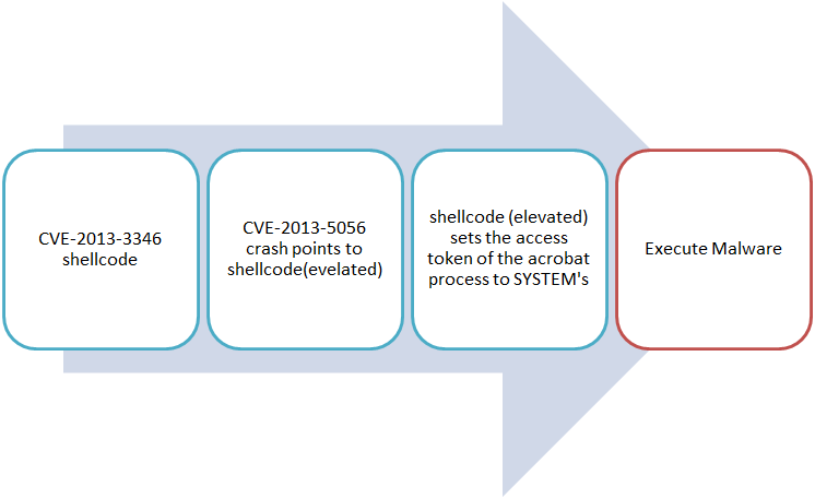 In December, we reported an attack that leverages a combination of Adobe Reader Vulnerability(CVE-2013-3346) and a Windows Local Privilege Escalation Vulnerability(CVE-2013-5065). These vulnerabilities are already patched by their respective vendors.