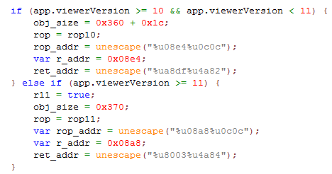 Here, the exploit is fine tuned for Adobe Reader 10 and 11.