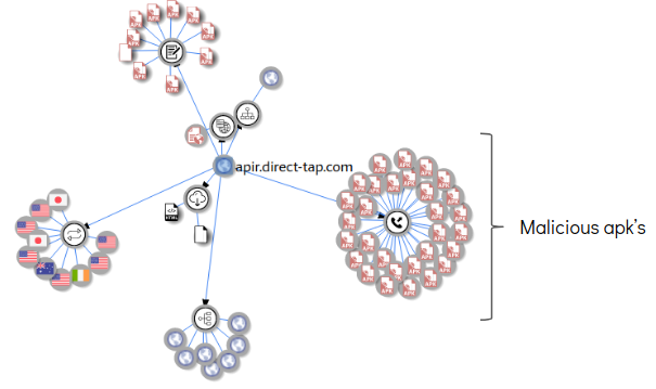 VirusTotal relations show a number of apps with malicious rating communicate with the domain apir.direct-tap.com: