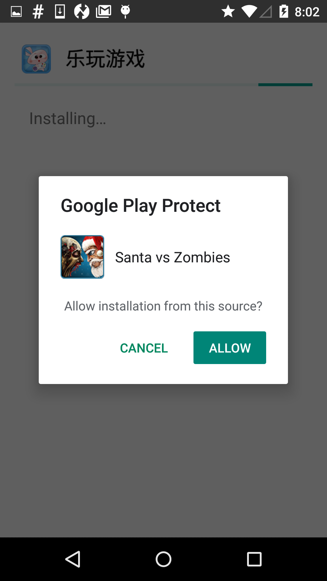 Once the app shortcut is clicked, a Google Play Protect prompt that requests the user to grant permission to allow the installation of this app from a custom source: