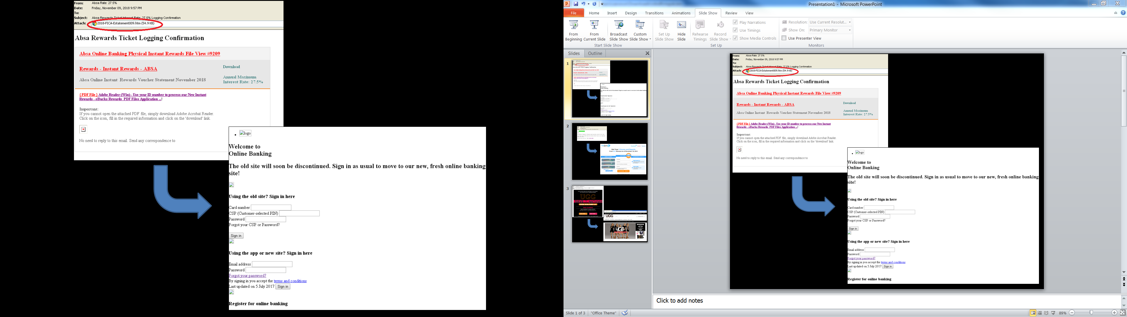 Looking further at the phishing email from Absa bank, for instance, the message promises an outrageous interest rate of 27.5%. Once you follow the link to claim the “reward”, the victim will be taken to a fake banking website different from the actual bank’s website asking for his online banking login information.