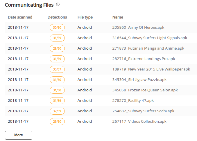 We analyzed a number of samples belonging to this threat, interestingly the earliest sample appears to be from mid-November 2018 indicating that this is a fairly new threat campaign. The timing of this campaign with Black Friday may be a coincidence, regardless it is possible that the attackers created more apk's with shopping related names to increase their chances of infecting more unsuspecting users since they already have some apps with such names as mentioned earlier.