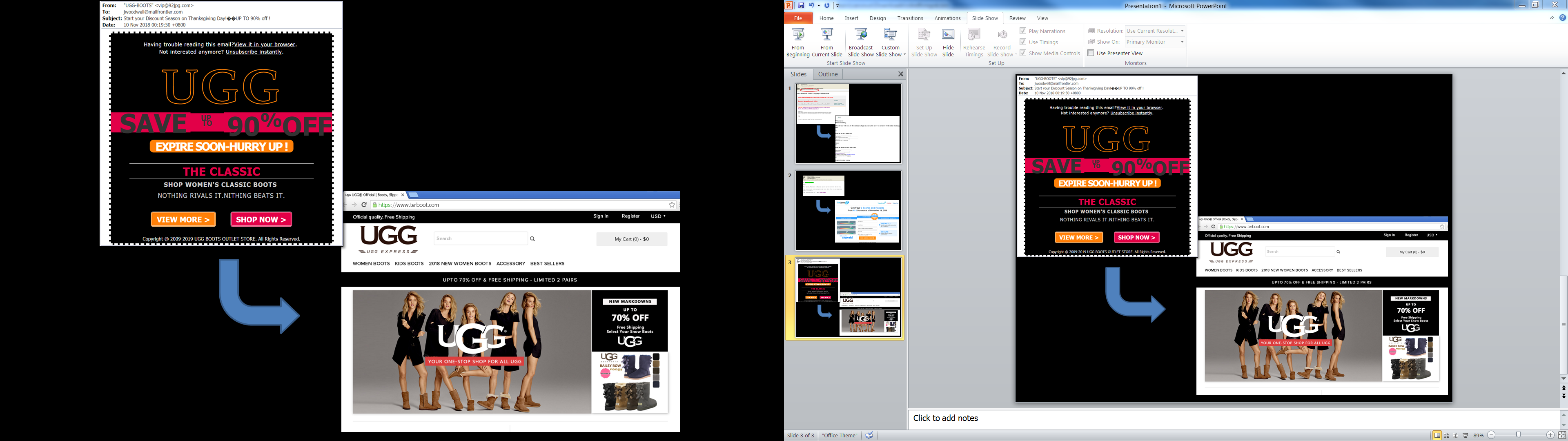 Another example is from a retailer promising a discount of up to 90%! The victim will then be taken to a fake website. There is never a guarantee of ever receiving the products when you shop on such sketchy websites.
