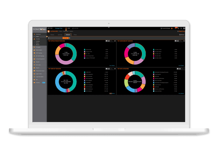 SonicWall Analyticsは、SOC/NOCに、特定の状況を迅速に調査するために必要な視覚的な洞察とレポートツールを提供し、すべてのエンドポイント、アプリケーション、ユーザーにわたるリスクを明らかにします。