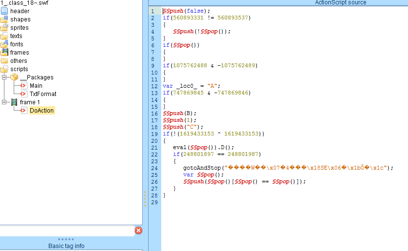 As you can see above, the code attempts to load bytes from 'var_51' which essentially points to one of the bytes arrays in 'binaryData' section within the SWF file. This is another SWF file embedded inside: