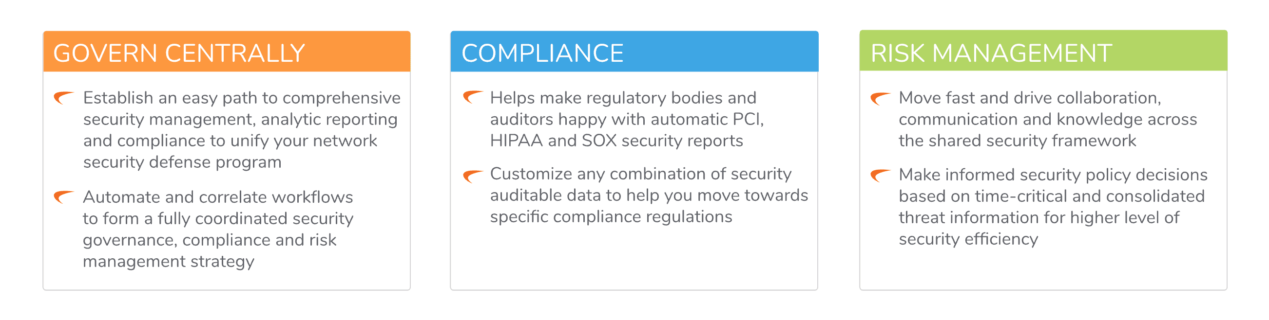 • Establish an auditable approach to security orchestration