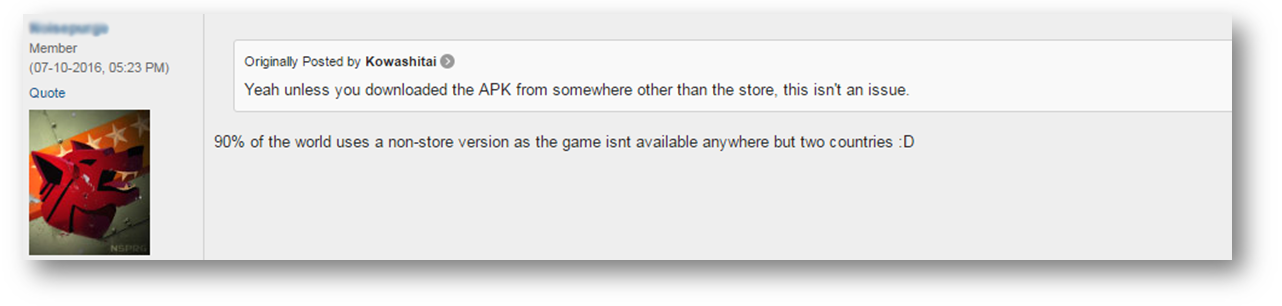 As clearly visible, this game got a limited release and is slowly rolling out to countries that could not get a day-one release. But this has left many wannabe players with no way to install the app from the official Play store, as a result they are resorting to non-store versions of the app. Their sentiment is perfectly summarized by the following comment on a forum: