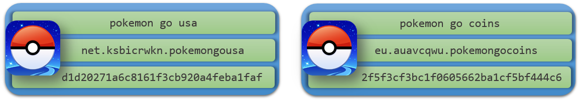 Some Pokemon apps would install other secondary apps on the device, during our analysis the secondary apps downloaded were mostly adware. A few such installer apps are listed below: