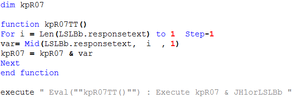 The below code snippet depicts how the reverse formatted script is decoded and executed: