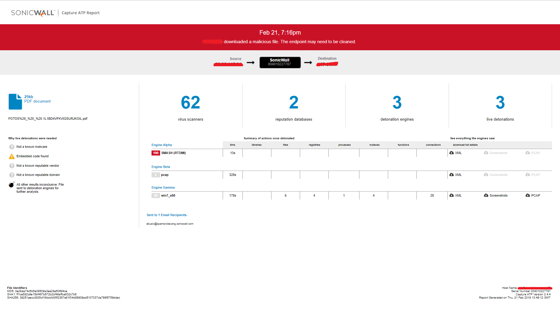 Evidence of the detection by RTDMI engine can be seen below in the Capture ATP report for this file: