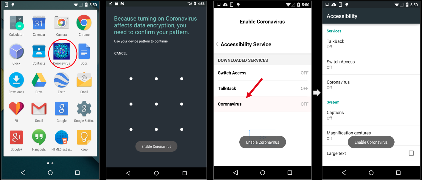 Malware writers have already started misusing the recent Coronavirus scare as a means to propagate their malicious creations as highlighted in one of our earlier blogs. SonicWall Capture Labs Threats Research team recently observed this tactic being used in the Android ecosystem as well in the form of a Remote Access Trojan (RAT).