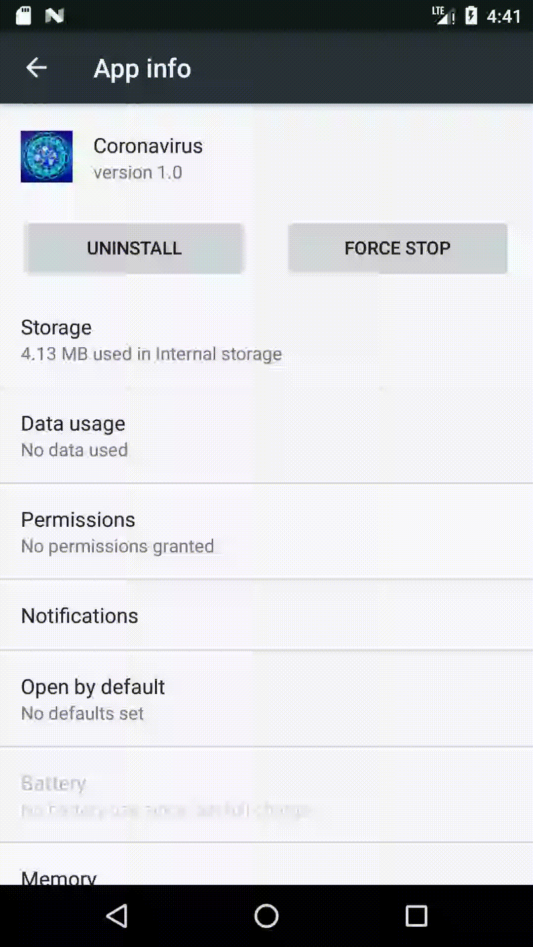 An Android apk that simply goes by the name Coronavirus has been spotted, based on the upload date on Virustotal and Koodous (early February, 2020) this sample appears to be fairly new.