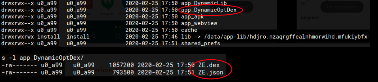 We came across a post recently where similar traits in an Android malware were highlighted. Inspection of the sample mentioned in the post - SHA cce3f896a0143deea326d803d27cda0faed292a3 - revealed that this sample and the Coronavirus sample that we analyzed both belong to the same family.