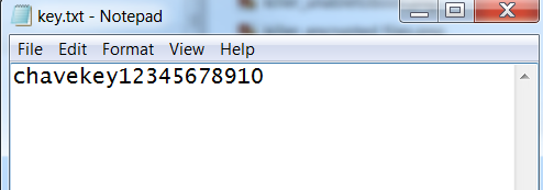Figure 2: Key.txt with contents that read "chavekey12345678910"